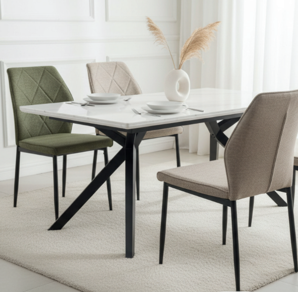 DESCRIÇÃO: CADEIRA COM DESIGN SIMPLES, ASSENTO E ENCOSTO ESTOFADOS, PÉS PRETOS