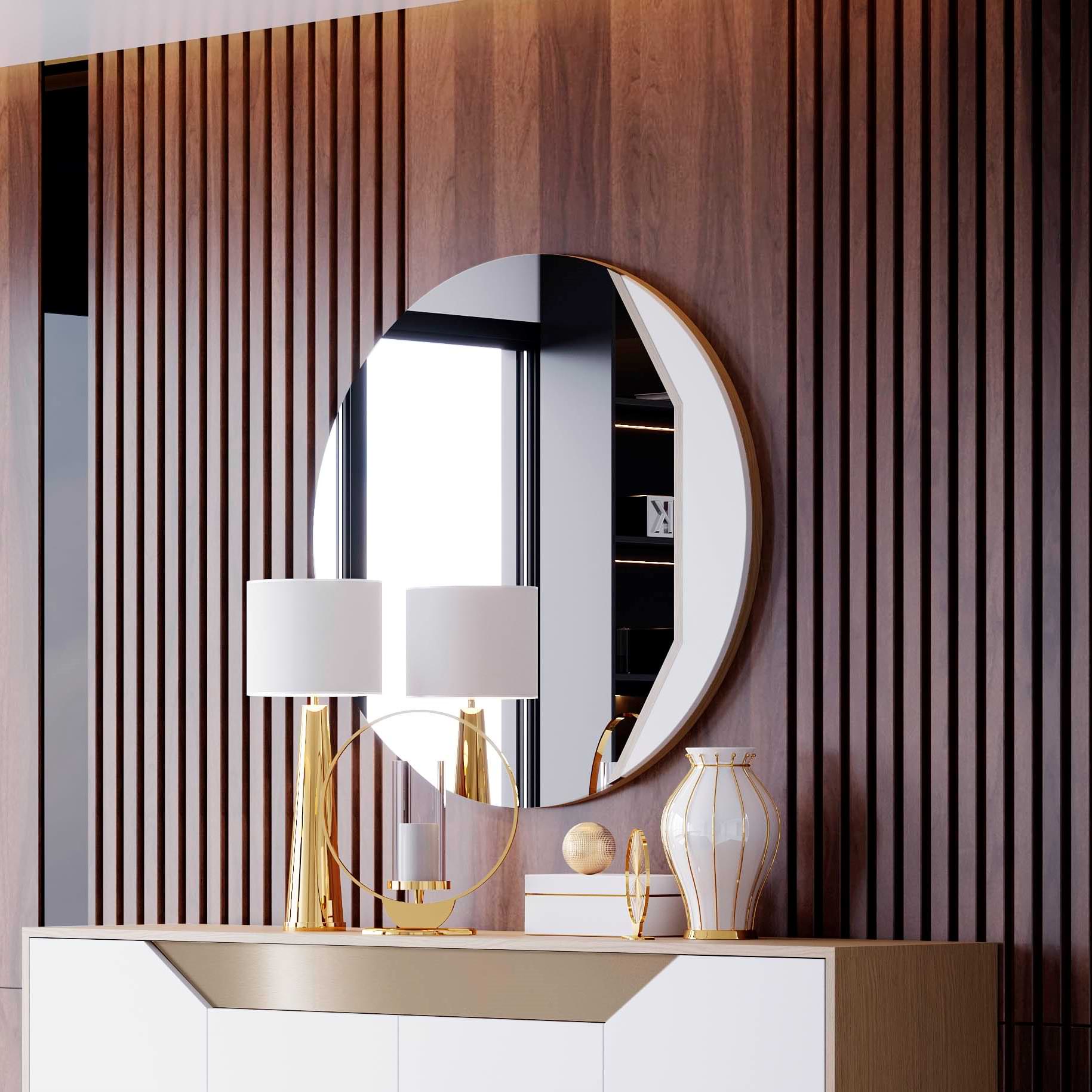 Espelho com Madeira Lacada em Dourado – Tamanho personalizável
