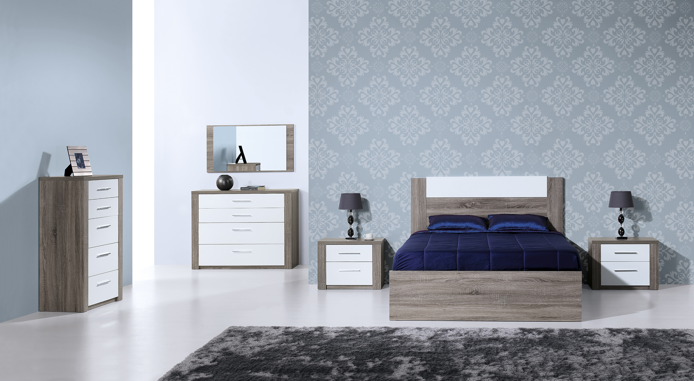 QUARTO CASAL Carvalho-Cinza/Branco