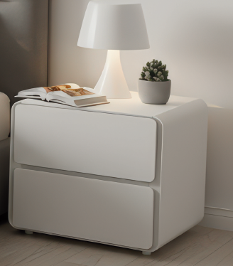 DESCRIÇÃO: MESA DE CABECEIRA LACADA A BRANCO, COM CANTOS BOLEADOS, 2 GAVETAS