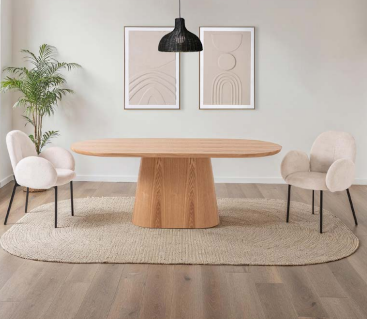 MESA DE JANTAR TAMPO OVAL CHAPA ROBLE E BASE ROBLE