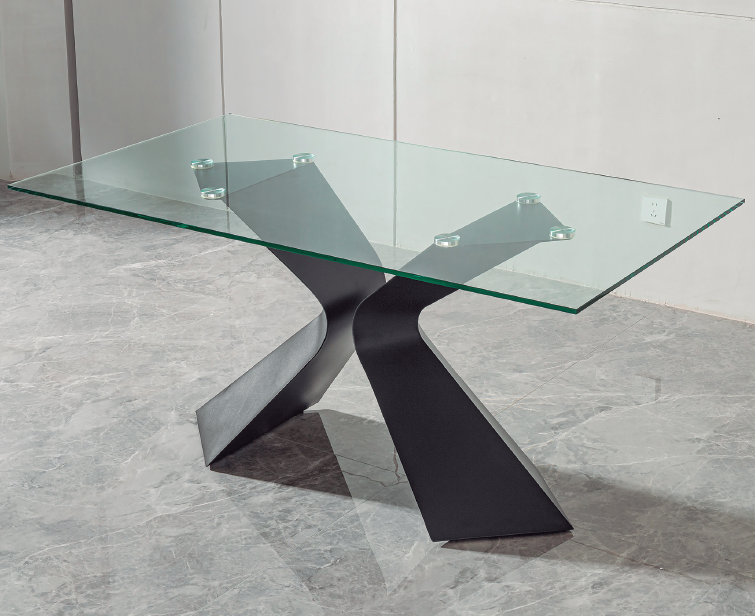DESCRIÇÃO: MESA DE ESTRUTURA NEGRA COM TAMPO EM VIDRO