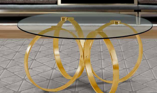 MESA CENTRO T/VIDRO BASE DOURADA
