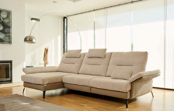 DESCRIÇÃO: SOFÁ COM SISTEMA RETRO (SISTEMA MODULAR DE ASSENTOS FIXOS COM COSTAS DESLIZANTES E ABATÍVEL, O MOVIMENTO DESLIZANTE É ELÉCTRICO E O                                        ABATÍVEL É MANUAL), CHAISE LONGUE C/SISTEMA RETRO (154)