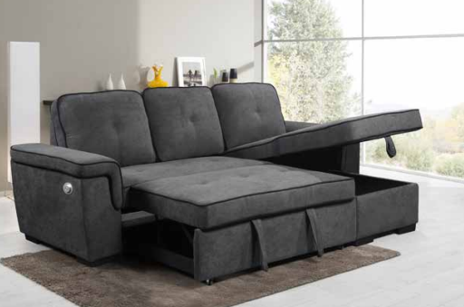 SOFÁ CHAISE LOUNGE TECIDO REVERSÍVEL C/PORTA USB